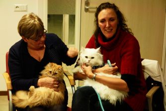 Na 2 weekenden theorie en een praktijk examen (die Lia en ik allebei gehaald hebben) hadden we vandaag praktijk examen. Vandaag moesten Lobo en Yorgo hun examens afleggen. Dit was best spannend want we wisten dat ze erg streng beoordeeld werden door een kattendeskundige en door ZorgDier. Het examen werd gehouden in Zorgcentrum Vincentius in Udenhout.